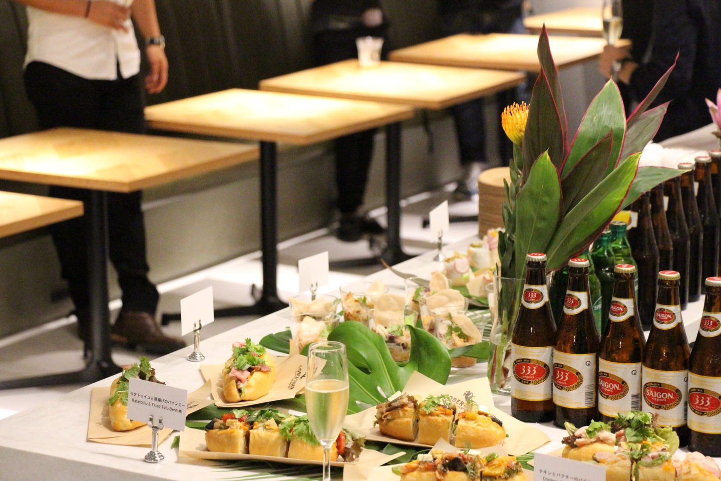 料理は1F&2FにオープンしたSOBER TIGER BANH MI STAND AND BARの看板メニューバインミー、生春巻き、唐揚げ、チェー(ベトナムデザート)など数々のベトナム料理をご用意。