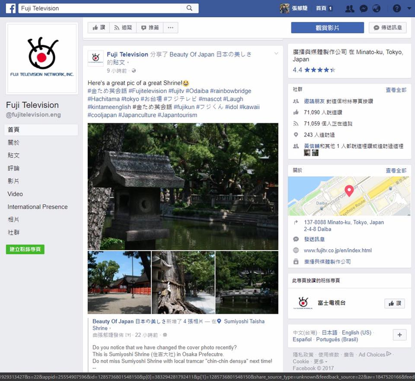 海外向けのFBページで、私たちが運営しているFBページの投稿がシェアされました!