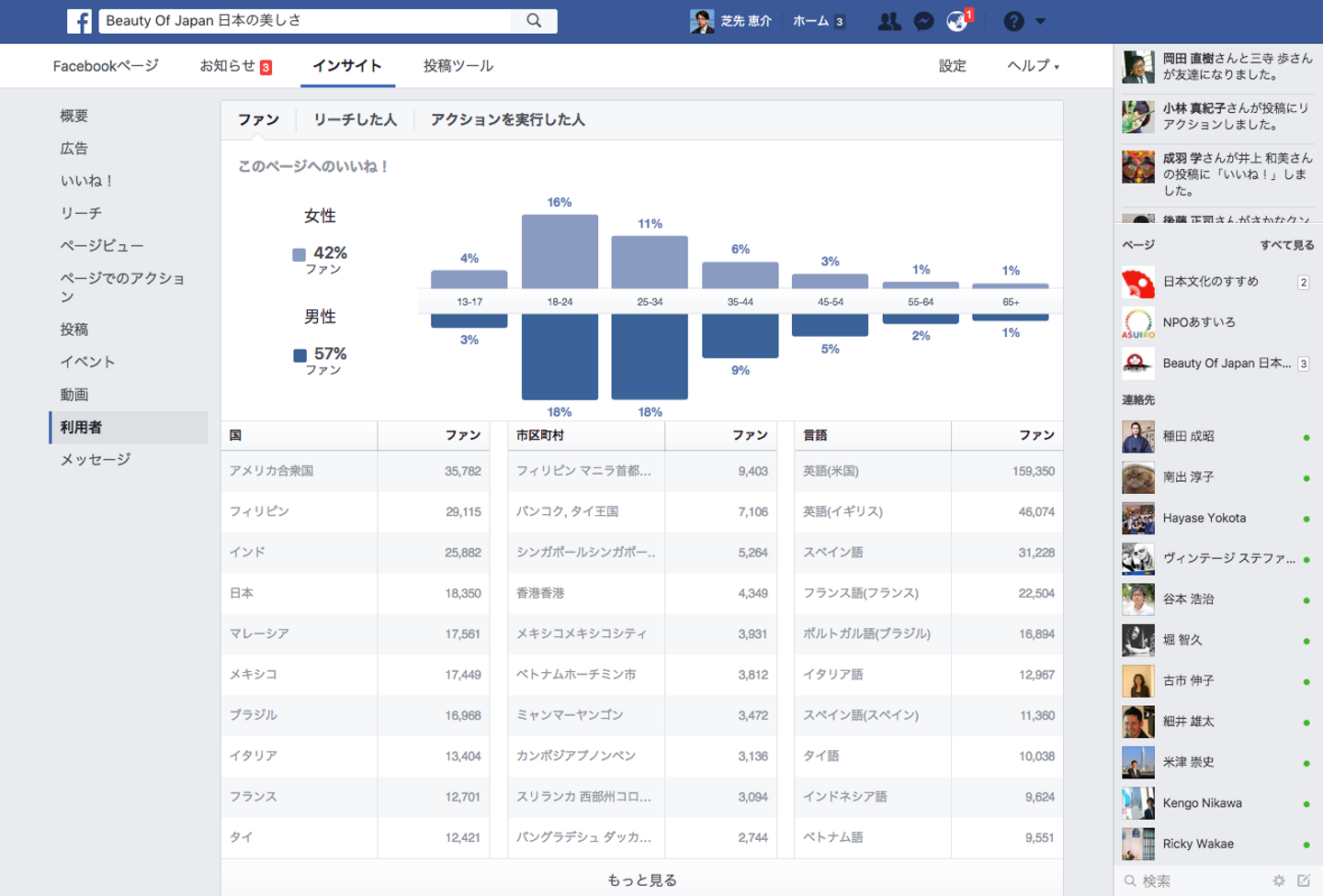 ページへ"いいね!"していただいているファンの国別