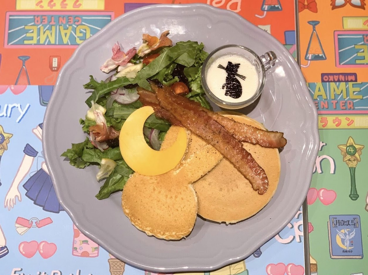 ルナをイメージした甘くないサラダたっぷりのパンケーキです。