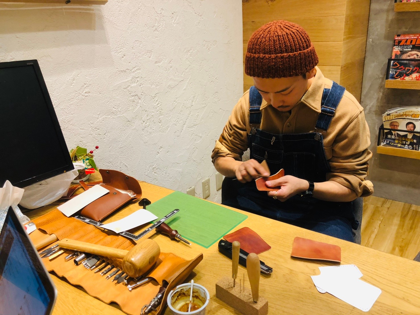 服部さんは趣味の革細工でパスケースを作ったり…
