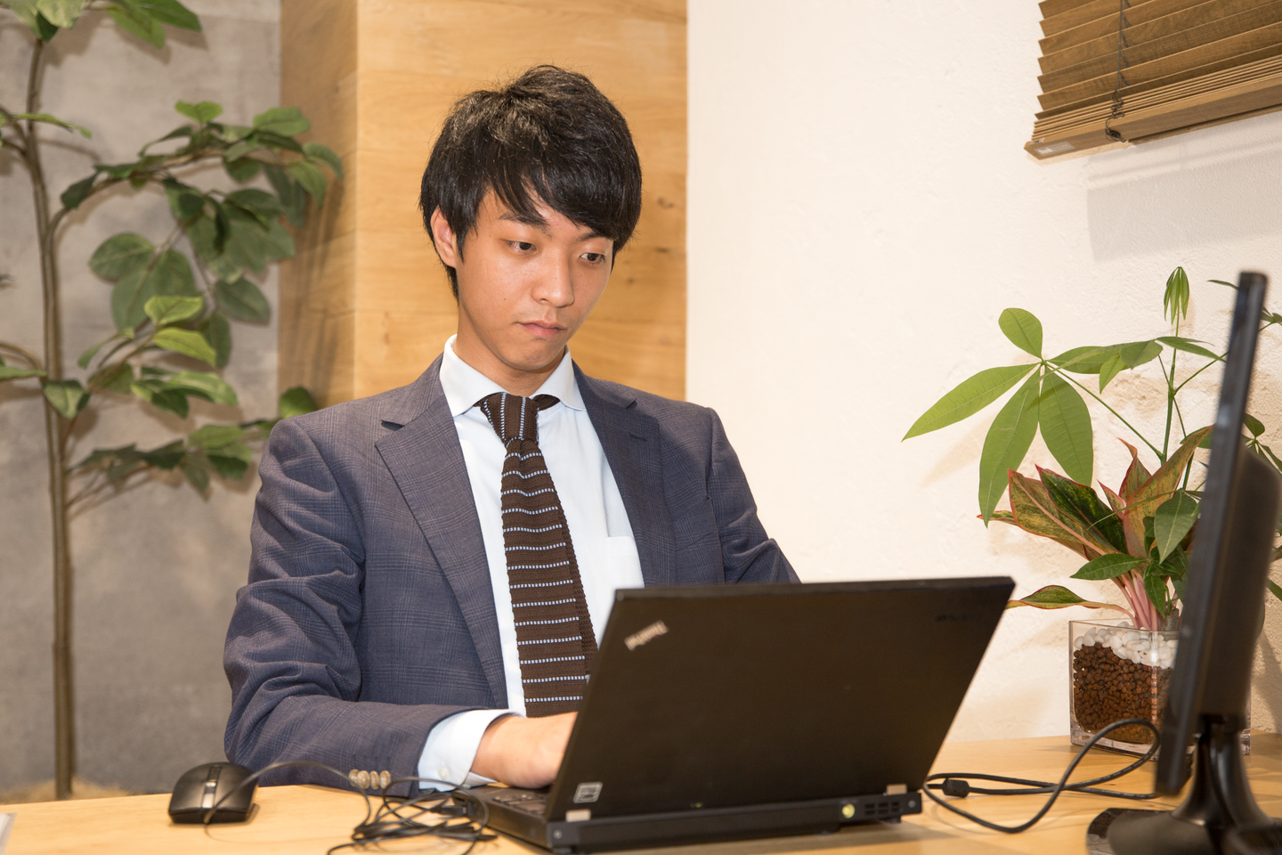 会社のためはもちろんですが、求職者のために力になりたいと奮闘中の杉山くん。