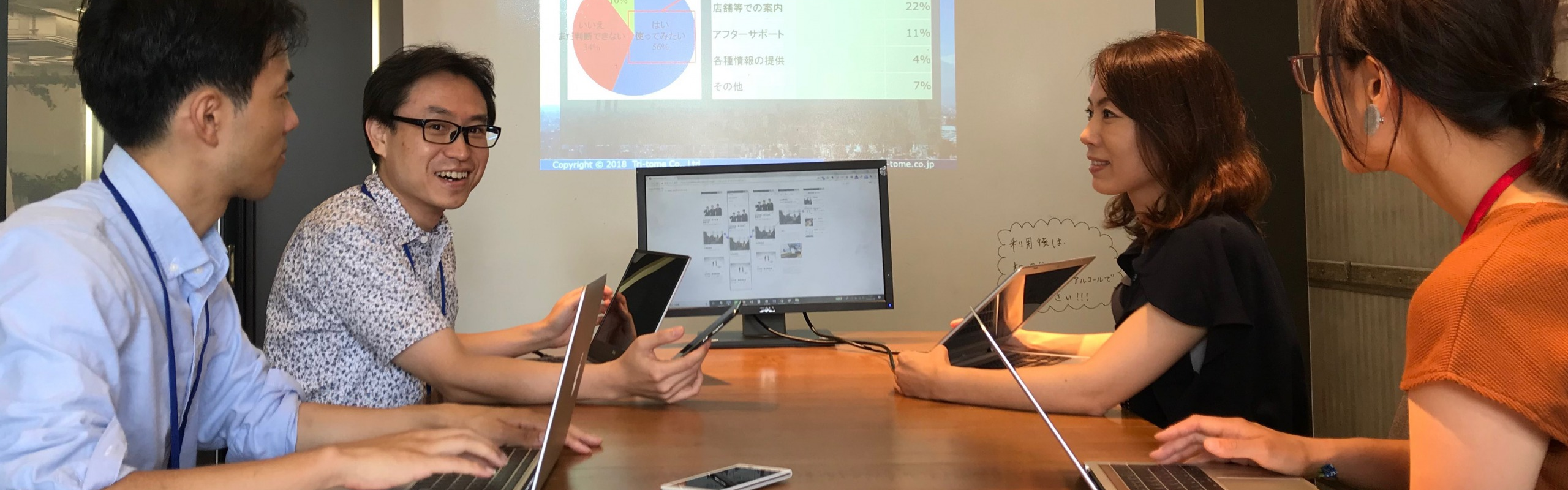 1つのプロジェクトに、社員、パートナー、アルバイトと様々なメンバーが参画して推進していきますが、情報は全てオープンにしており、お客様を思う気持ち、課題解決に向けて全員が対等な立場で向き合っています。