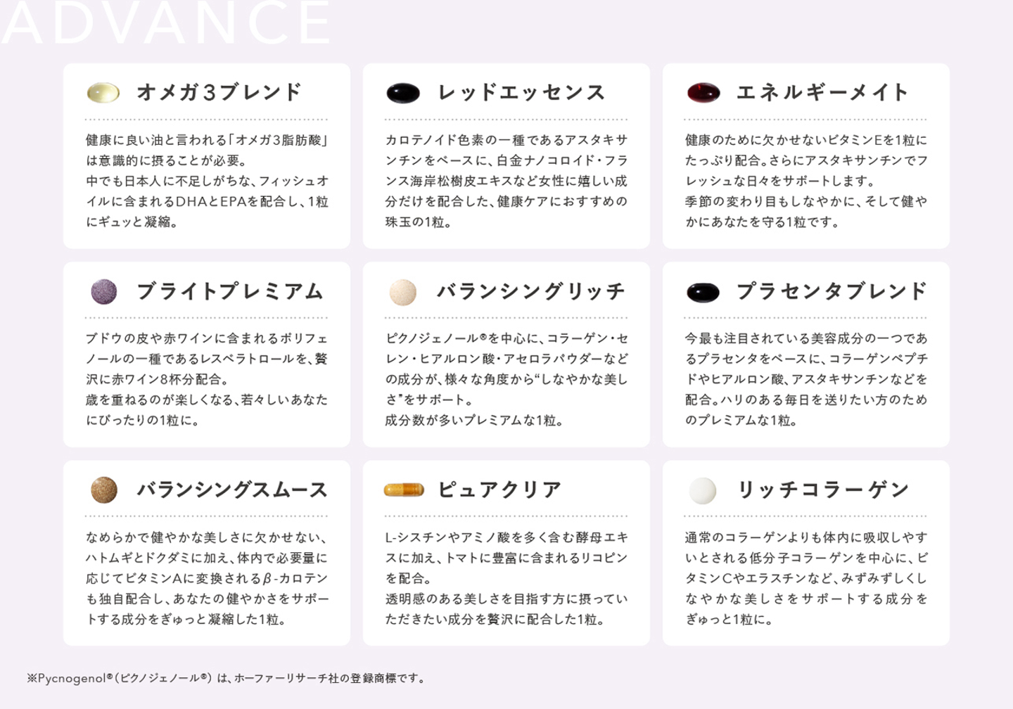 パーソナライズ分析から導き出すADVANCE3粒の効果をサポートする基本の2粒。