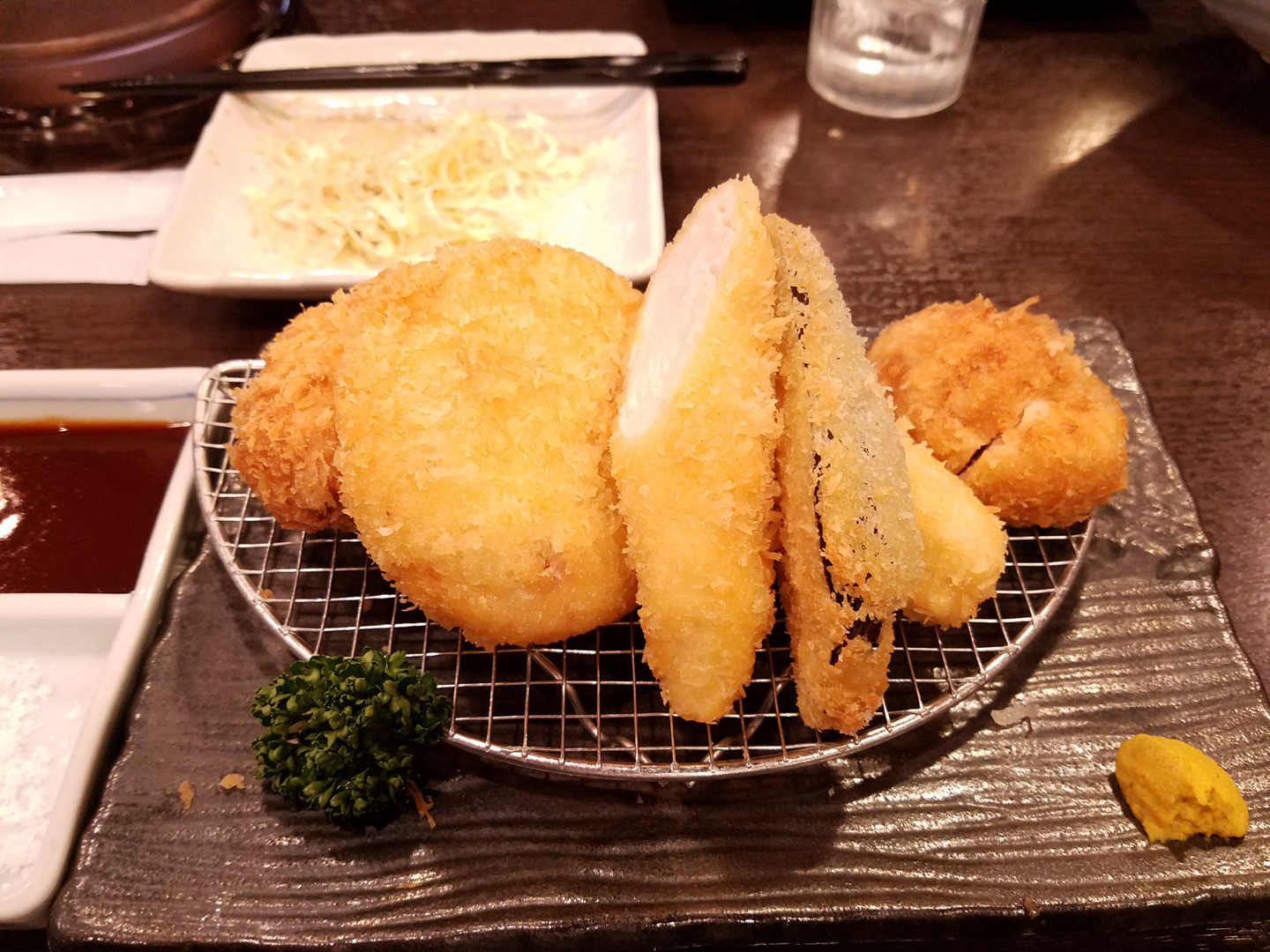 メンチかつ、一口ひれかつ、カニクリームコロッケ、なす、ササミかつという