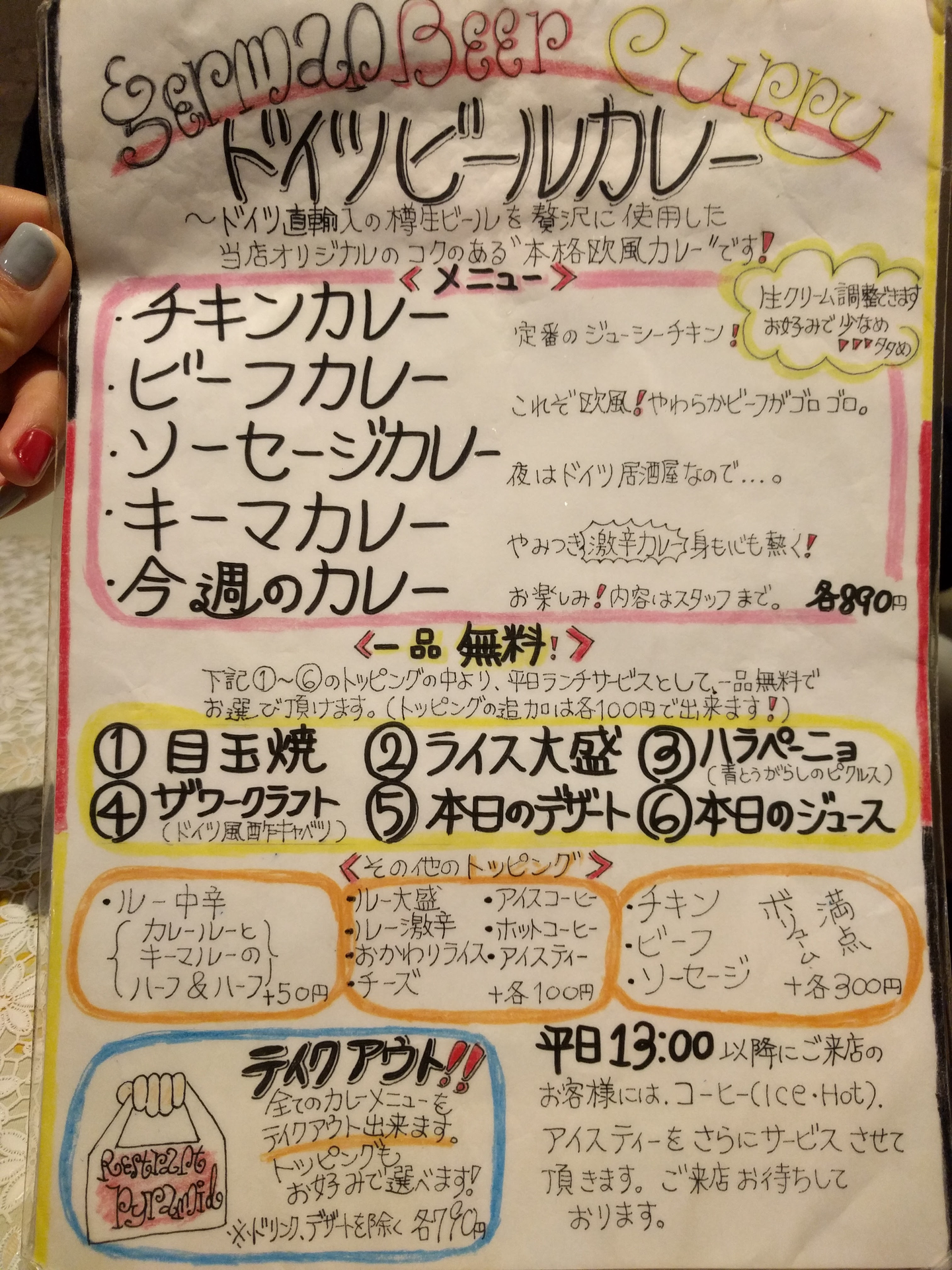 ※夜はドイツ料理を頂けるようですが、ランチメニューはカレーがメインのようです。