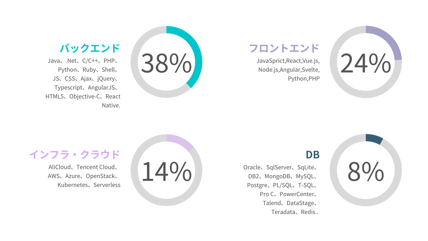 A3:トリオではJavaやC/C++の現場が多いですが、最近はモバイル、フロントエンドの現場も増えてきております。