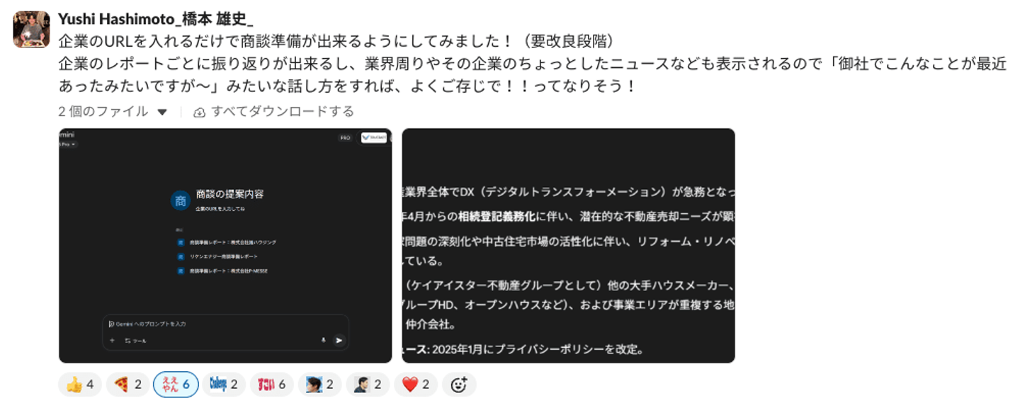 商談準備にもAIを活用。プロンプトをメンバーに共有して、業務の効率化を図る。