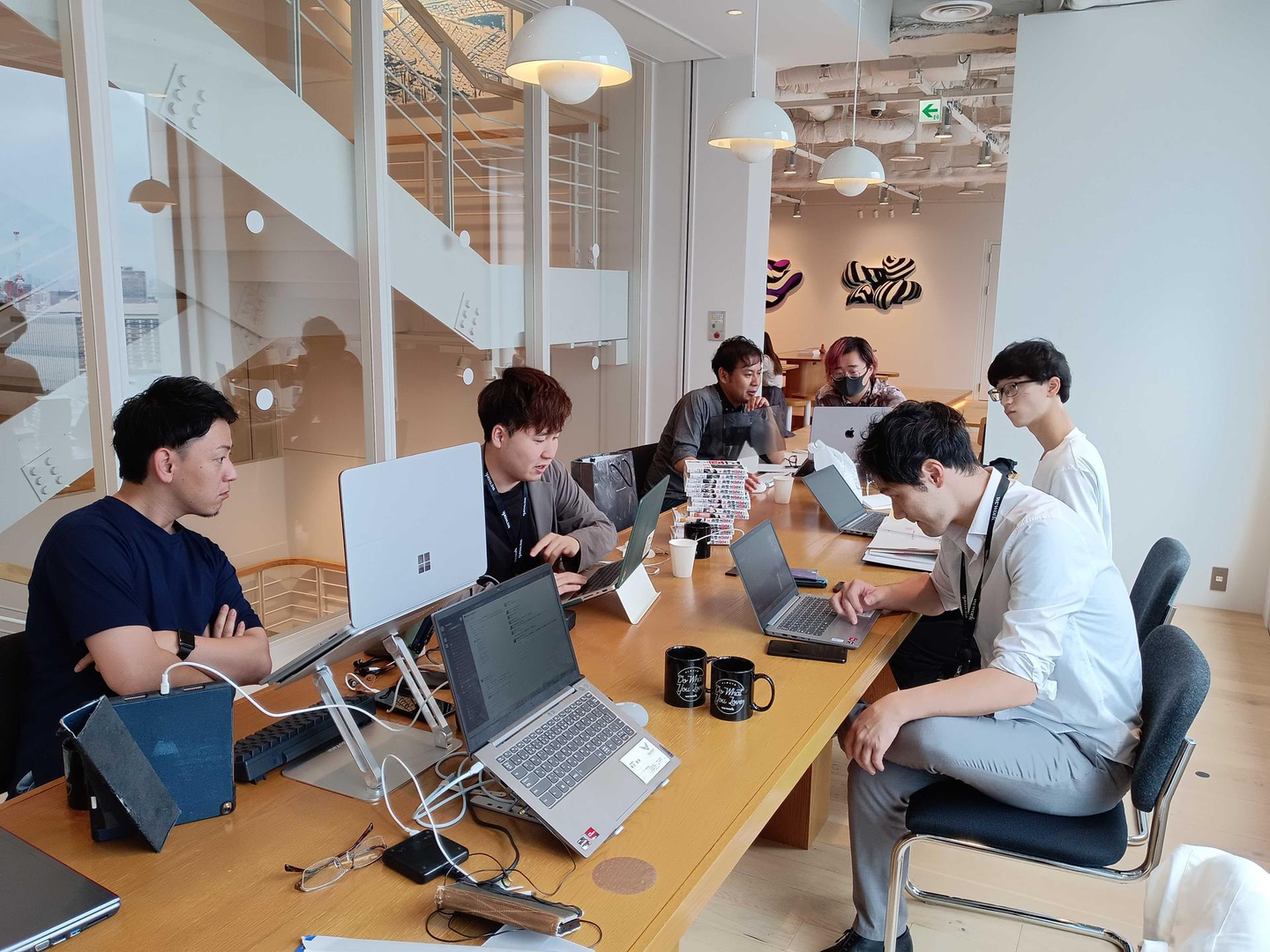 (2022年4月から設けた神谷町オフィスにて、全員でテーブルを囲む)