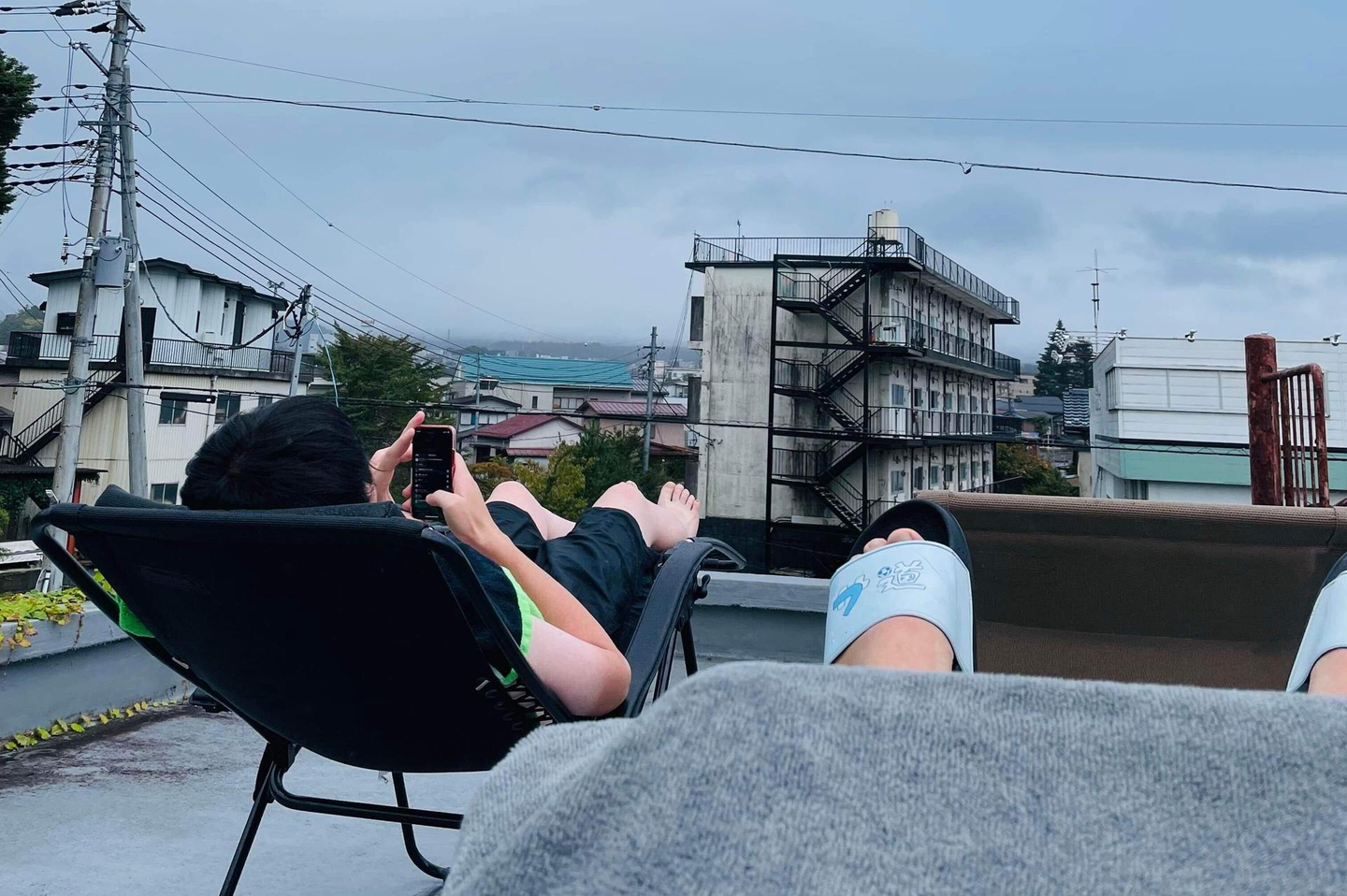 先日、富士吉田市でワーケーション×サウナ合宿を開催!写真は外気浴中のひとこま✨