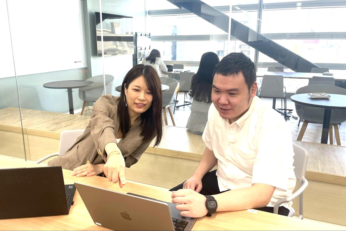今回は、パブリテック事業部 ビジネスグループのカスタマーサクセスマネージャー・三成 由美さんと、ノーコード電子申請ツール「LoGoフォーム」の開発を担う、同事業部プロダクトグループの、プロダクトオーナー・近藤 雄太さんに、開発体制や技術的チャレンジ、グループ同士の連携などについて伺いました。