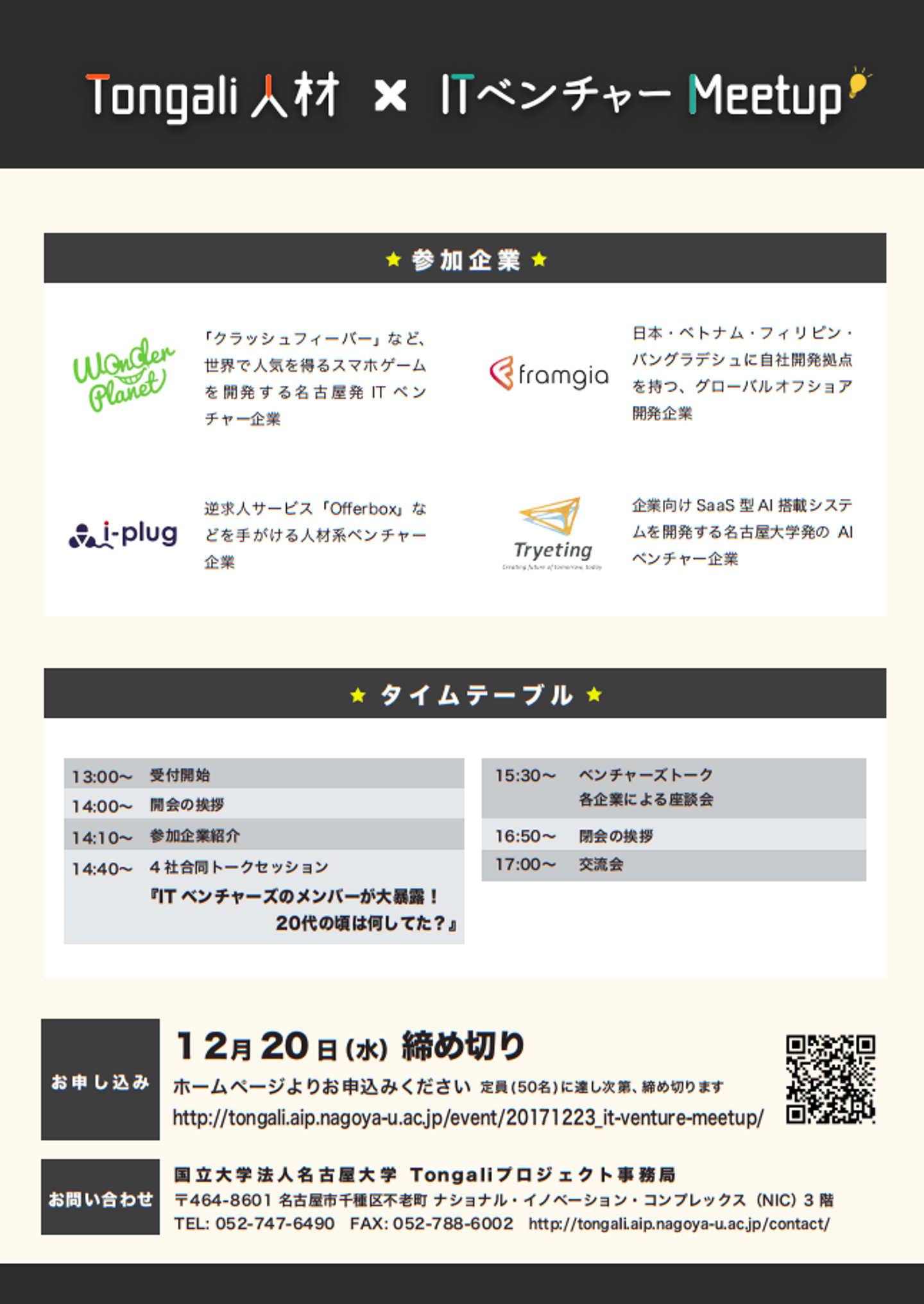 http://tongali.aip.nagoya-u.ac.jp/event/20171223_it-venture-meetup/