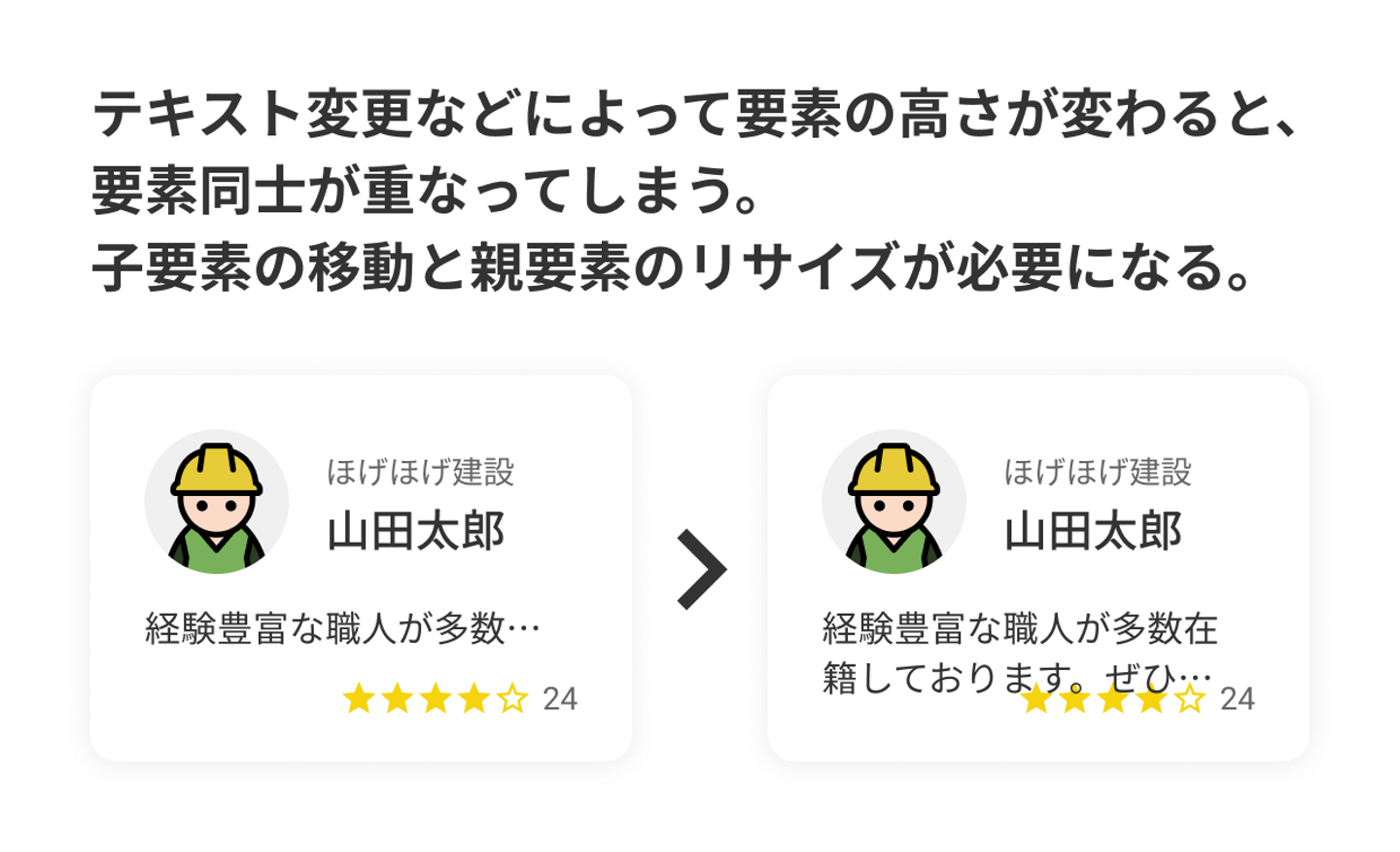 カード内の要素をAutoLayoutで整列させていましたが、AutoLayoutを入れ子にして、カード同士を自動で並べることもできます。