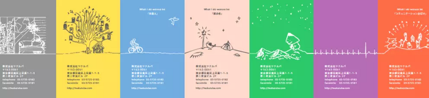 ※ツクルバでは、「発明したい場」をテーマに名刺裏面のイラストを各々が描いており、個性豊かなメンバーのそれぞれの想いが垣間見えるものになっています。 ツクルバのメンバーと名刺交換した際は、ぜひ裏面にも注目してみてください!