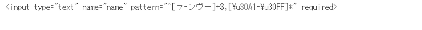 これは正規表現を使った入力制限により制限にかかっていないものはバリデーションで弾いてくれるという優れた代物で、特にjsなどのバリデートをしなくてもブラウザに準拠したバリデートが働いてくれます。