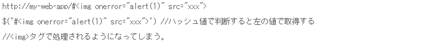 以前のver.1.6では $(location.hash) の脆弱性が指摘されており、要素の検索や作成などを引数の文字列で判断するため、$()内でスクリプトを記載すると#idで指定したものがそのまま要素として判断されることがありました(ver1.6.3にて修正済み)