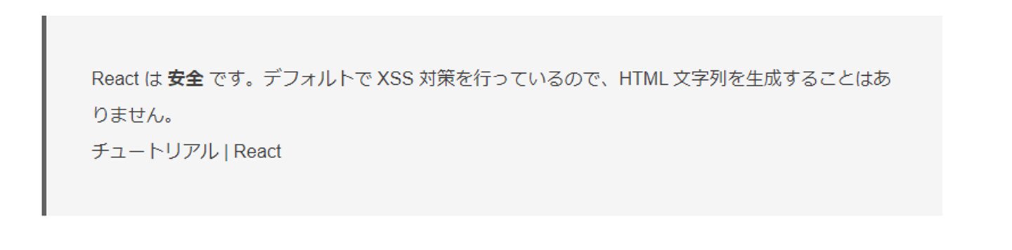 ちなみにReactには「dangerouslySetInnerHTML」というhtmlを埋め込む際に、名前からして物騒な、これは危険だよと知らせるためのプロパティがあります。