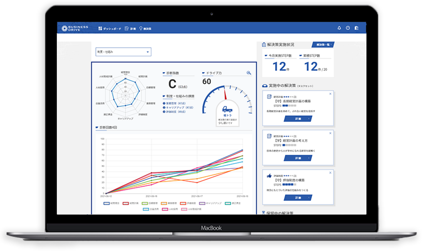 弊社は、日本企業の事業成長に必要不可欠な「強い組織」を企業が自ら作ることができるように、組織の問題を見える化し、AIが解決策を提案、実行支援する組織改善AIクラウドシステム「BUSINESS DRIVE」を開発しました。
