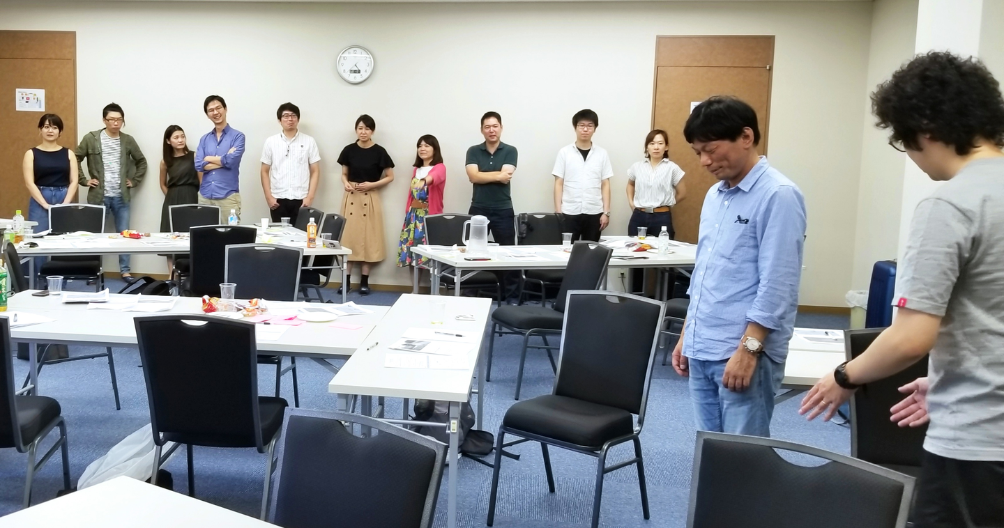 素敵なチームビルディングにはお互いを信じ合えることが大切。そのようなことから、トラストビルディングのロールプレイングにもチャレンジ。 2人1組になり、目をつぶっている相手を最初は手を引いて、最後は声だけで誘導とどんどん難しくなっていきます。そこでリアルに感じたことは、相手に身をゆだねること、情報伝達の難しさなど、コミュニケーションでの気付きをいくつも見つけることが出来ました。