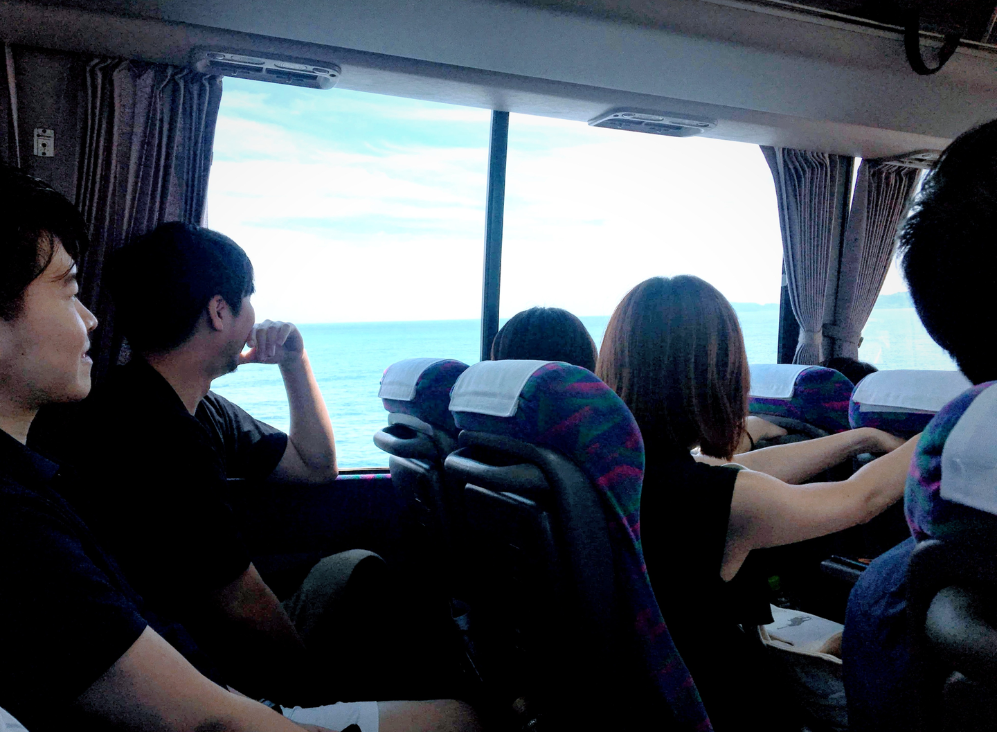 金曜日の朝、オフィスが入居する日比谷公園に面したビルの前から、チャーターしたバスにみんなで乗り込みました。セールスチーム以外は、オフィスカジュアルが基本の弊社ですが、今日はリラックスした服装なので、普段の皆さんの雰囲気を感じることができて、お互いカジュアルな気分に。
