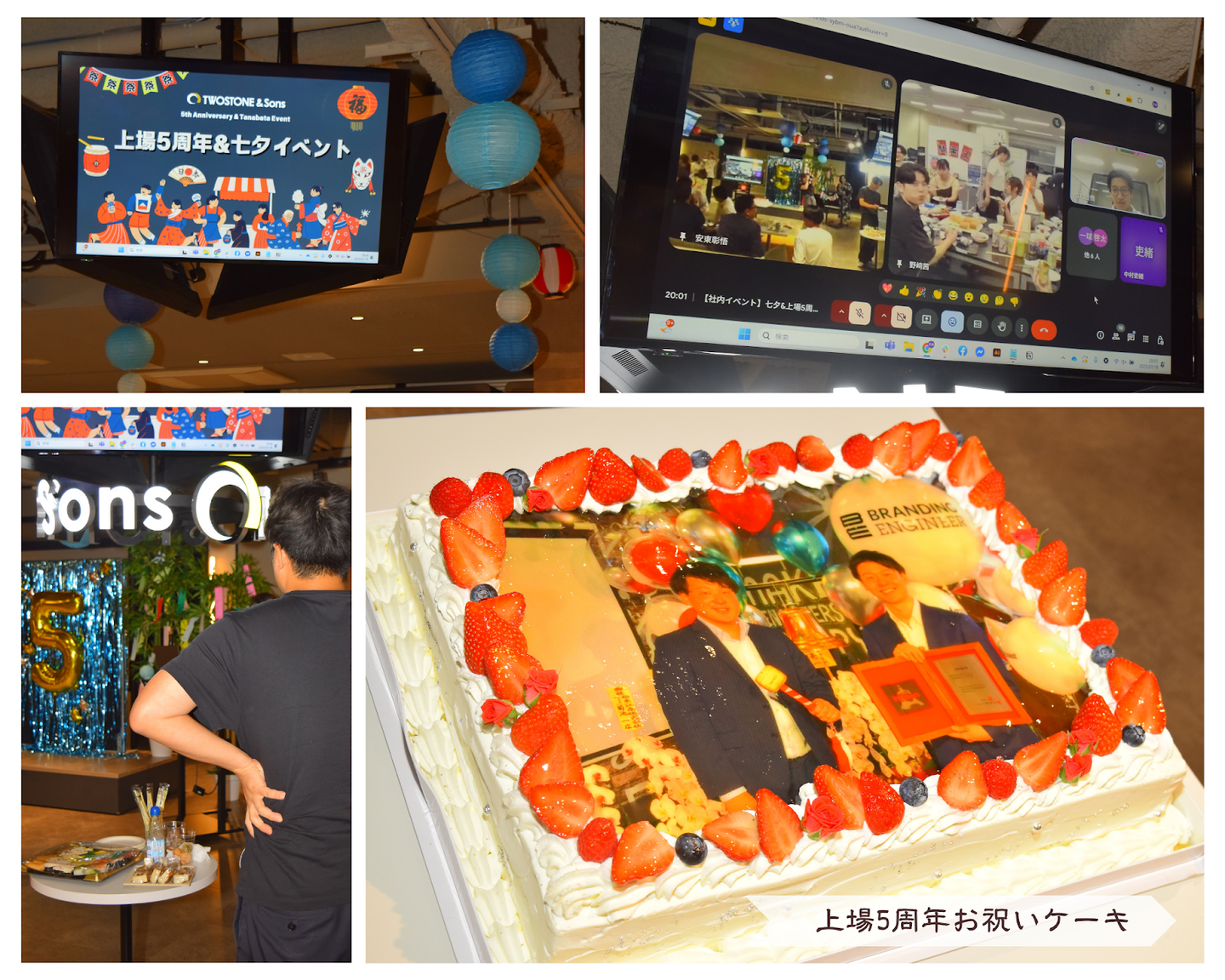 上場5周年を記念して特製ケーキが登場!拠点をオンラインでつなぎ、全員でお祝いしました!