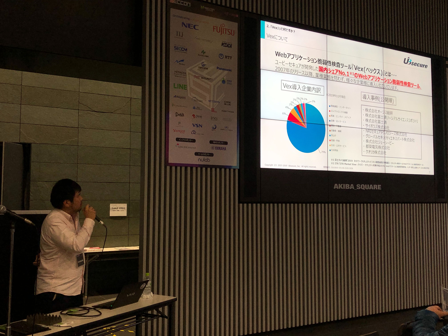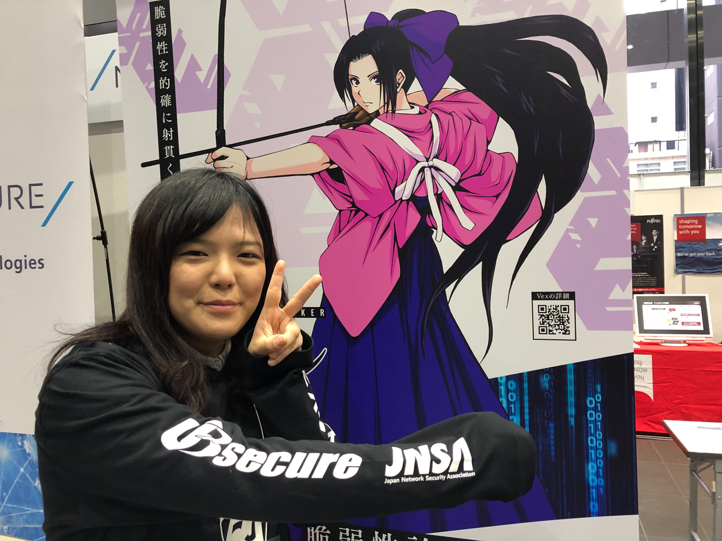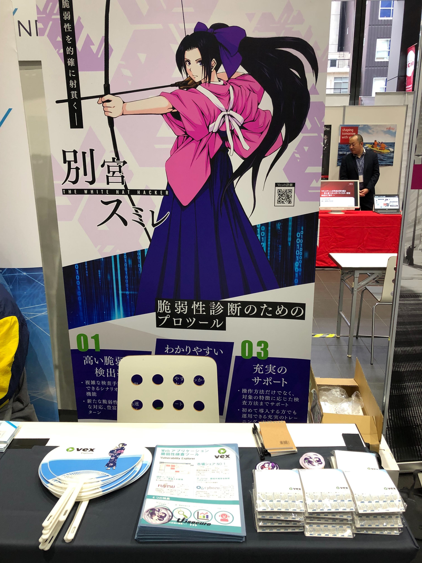 ・当社社員がユービーセキュアで開発している診断ツール『Vex』のデモをするので、ブースに遊びに来てくれた人たちにオススメすること