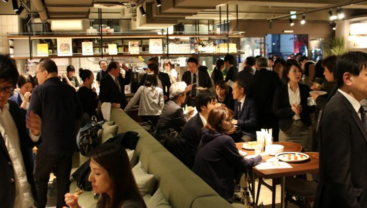 トークイベント終了後には、地域のみなさんもお招きしてレセプションパーティーを開催。開業のお祝いと、これからの神保町の新しいランドマークになるようにと多くの期待の声をいただきました。
