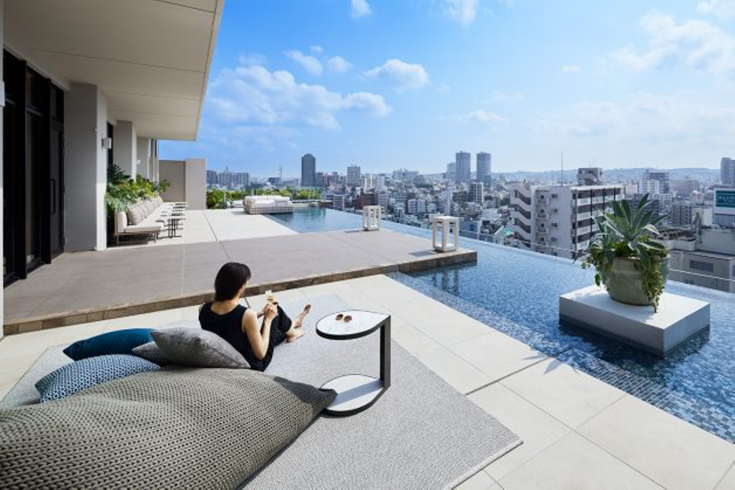 空港や国際通りからのアクセスもよく、沖縄・那覇市を走るモノレール「ゆいレール」の美栄橋駅前に位置する立地。市街地のなかでもリゾートの心地良さを備えた「RYUKYU URBAN RESORT」をコンセプトとしています。
