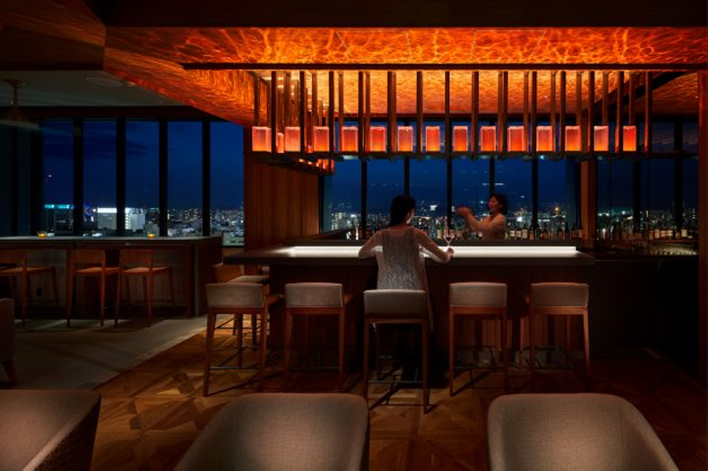 夜にはまた違った雰囲気に。お酒と共に夜景を望む大人のためのバーとしてご利用いただけます。