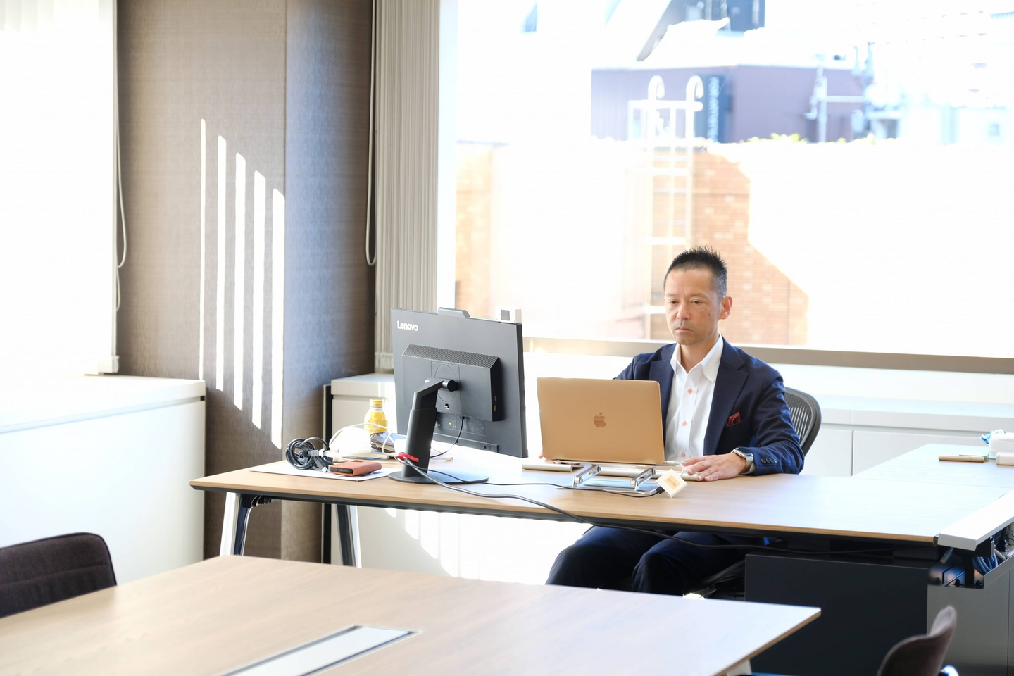 須田さん、広々とした部屋でL字机、社長っぽいですね!(笑)