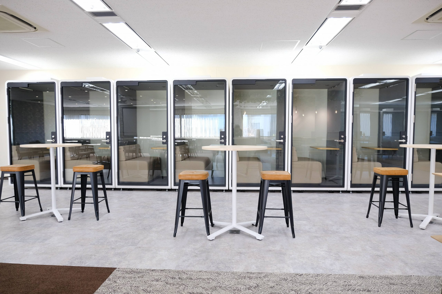 一番の注目は個人用作業ブース!コクヨさんの「WORK POD」です。20台導入した企業は当社が初めてとのことです。