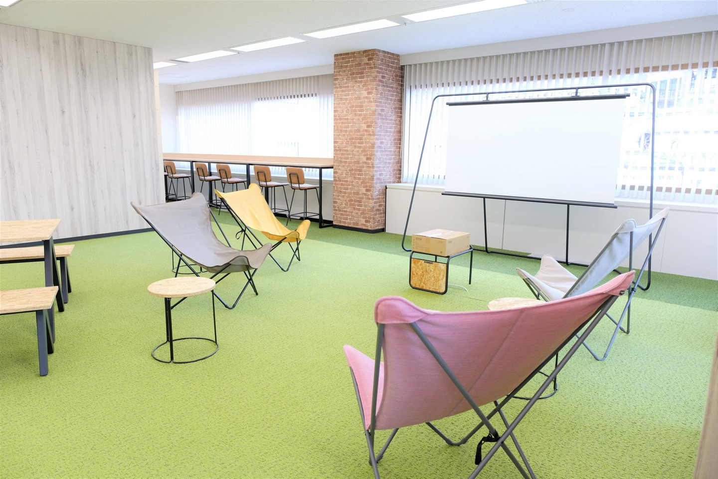 リラックスして、ブレストしたり、新しいアイデアを出し合ったり、ここでワイワイするイメージです。