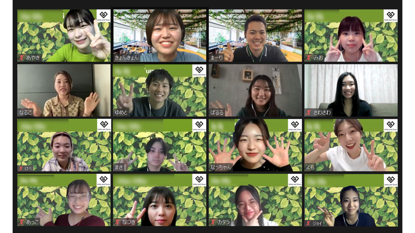 オンライン内定式で、先輩社員のみなさんも含めてみんなで写真を撮りました!