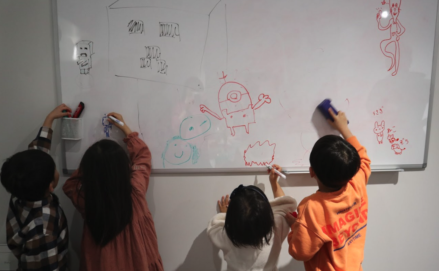 ホワイトボードでおえかき...いえ、お仕事をしています!