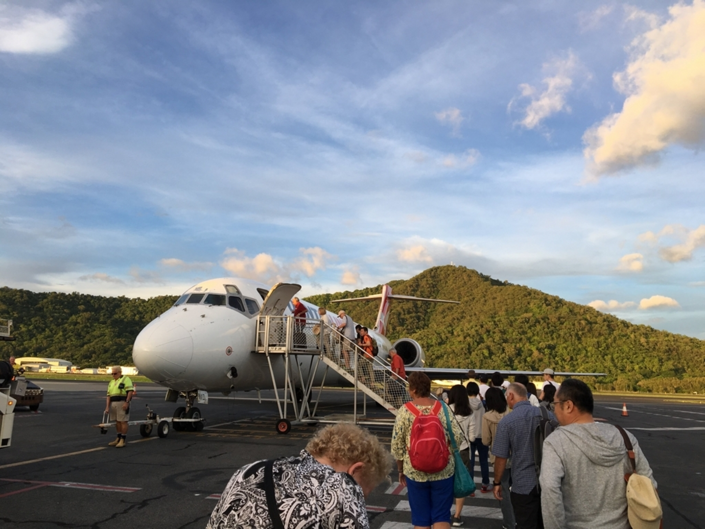 眠い目をこすりつつ、人もまばらなケアンズ空港に私はいました。