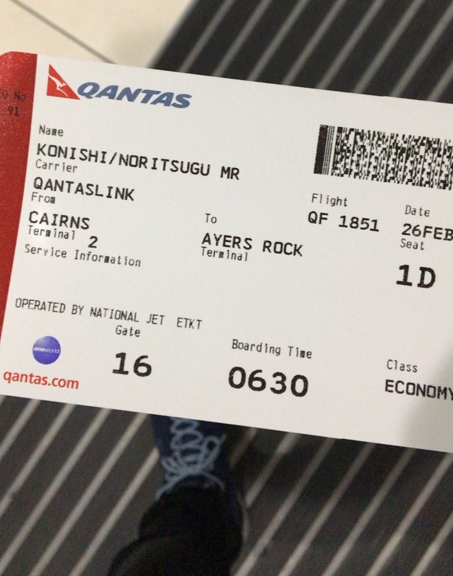 この後、私は旅の1番の目的地を目指し飛び立ちます。実感は全くありませんが、4時間もすれば、あのエアーズロックと対面することとなるのです。