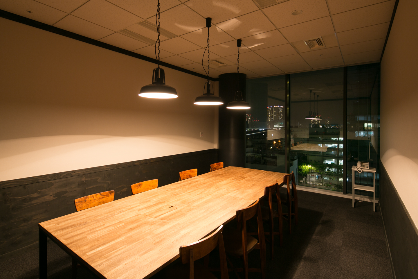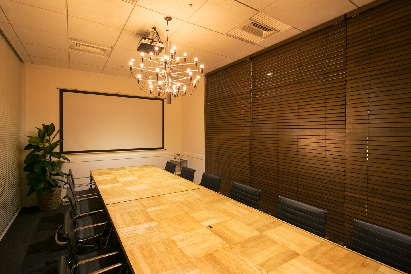 落ち着いてお打ち合わせができるような空間に仕上げています。フリーwifiやプロジェクターなどの環境もバッチリ整っています!