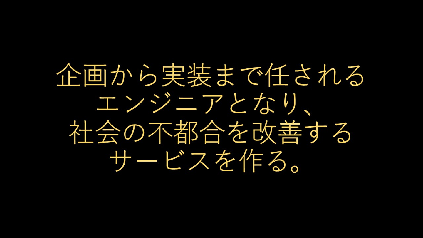僕が「個」として思い描いているビジョンは、ビジネス側にいずれは携わりたいんですよね。「作る側」から「作るものを考えて決める側」にまわっていきたいと昔から考えています。ただ、作るものを考える立場であれば、作り方や作り手の気持ちも自身の経験として習得している必要があると感じているので、まずはエンジニアとして自力を付けていくのが最優先だと思っています。