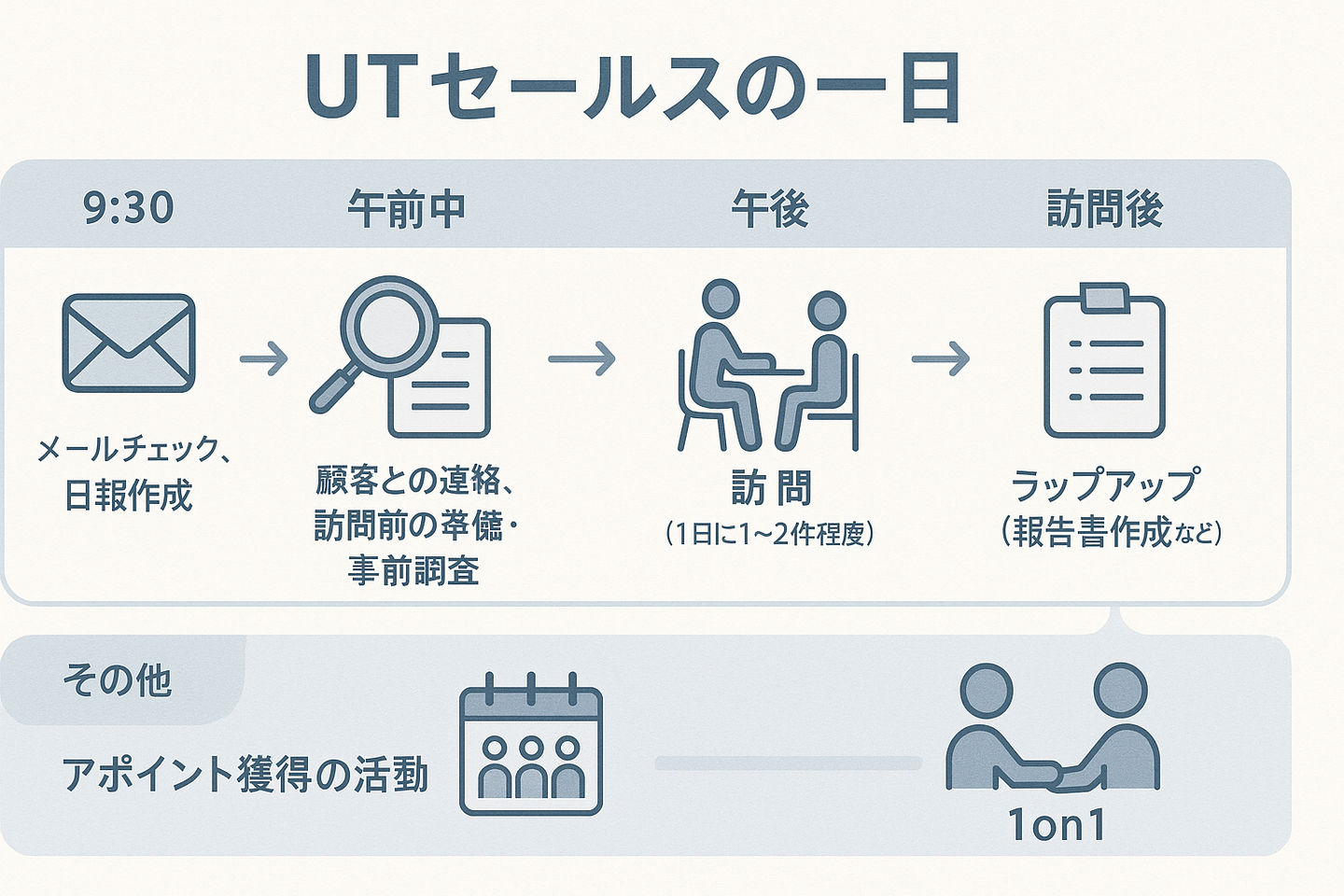 ——UTセールスのリアルな1日について、ざっくりとしたイメージを教えてください。