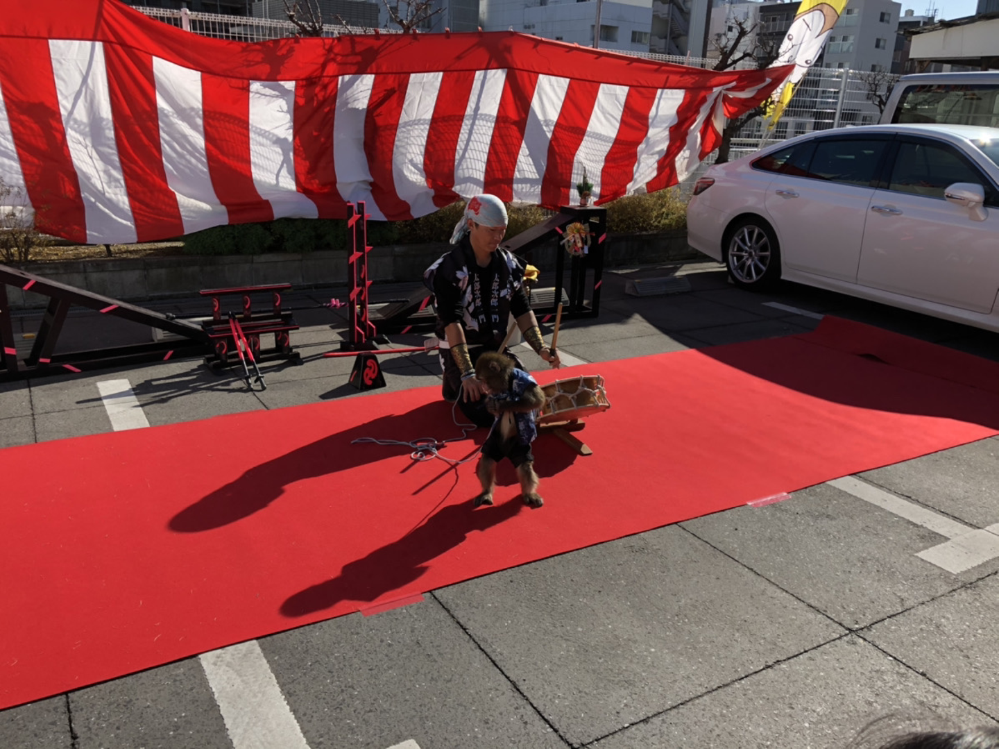 ↑ (逆光ですが)お猿さんも年始から可愛い芸を見せてくれていました。