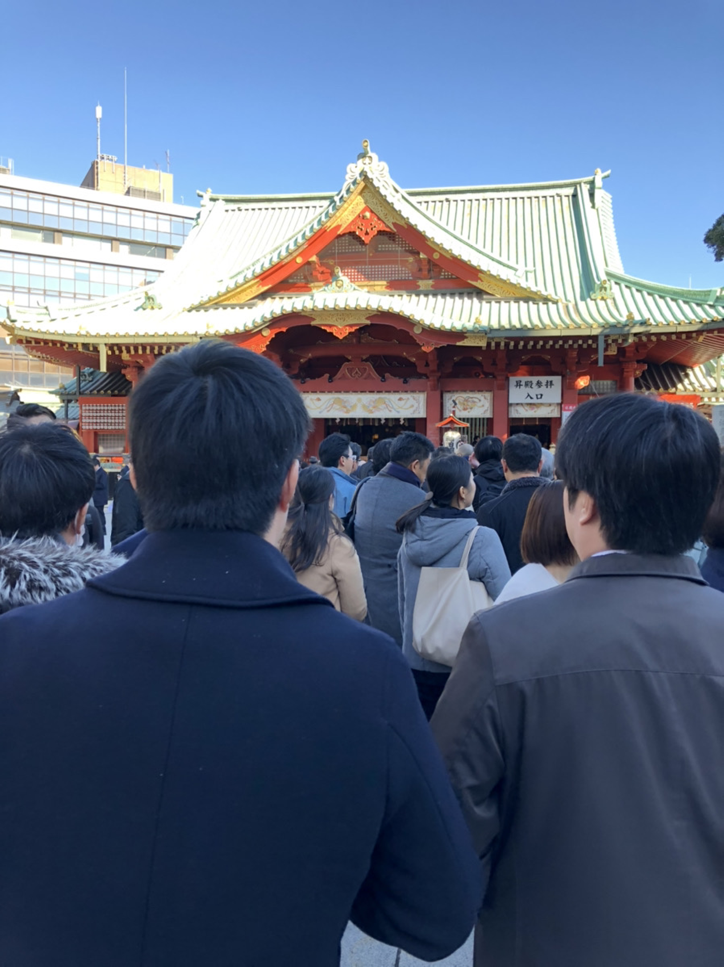 結果→正解! 下記の写真ご覧のとおり、綺麗な青い空でお天気もよく、気温も穏やかで、とっても気持ちの良い初詣になりました。(これだけで、「いいことありそう」とか思う)