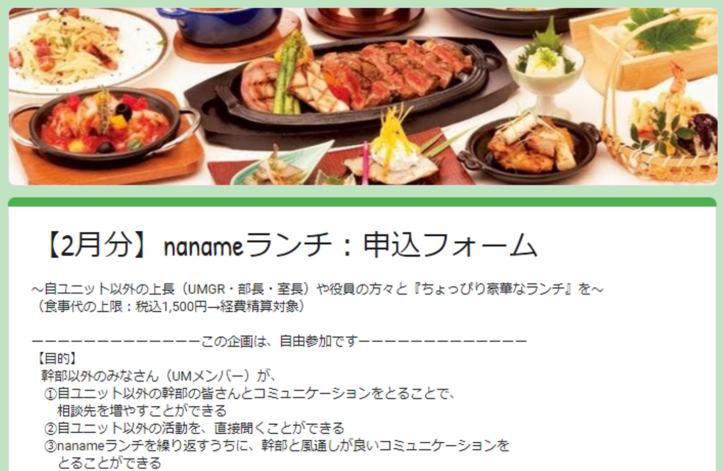 通常のランチミーティング補助より少しお高めに補助金額を設定しているため、ちょい贅沢なランチを楽しむことが…(*^-^*)