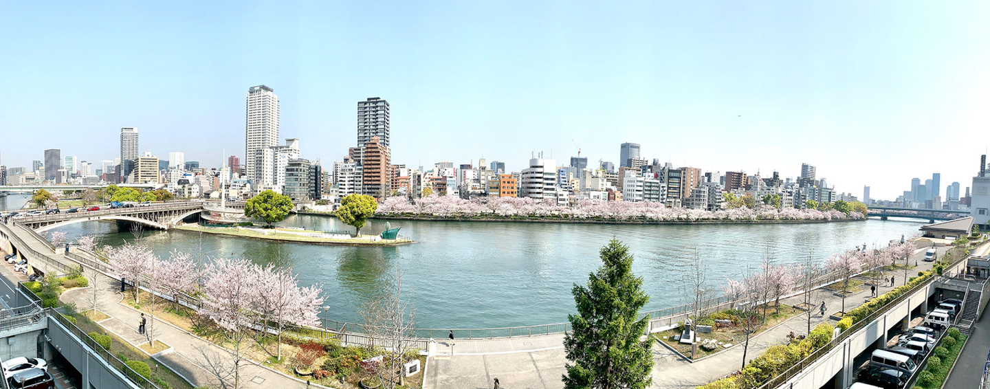 オフィスから見える川は「大川」と言い、大阪市の中心を流れています。