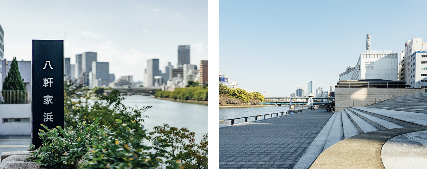 川の駅はちけんやからは、水上バスや遊覧観光船・屋形船などが発着し、川と陸との結節点として水都大阪の拠点にもなっています。