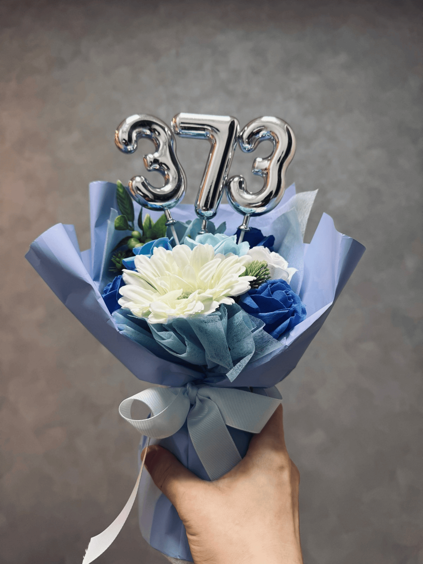 バイト先で貰った可愛い花束。373(ミナミ)です。373歳じゃないですよ。