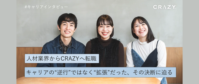 世の中では「効率か、人間性か」という二択で語られがちですが、CRAZYはその両端を追い求めることにこそ、本質的な価値があると信じています。一見相反する二つを高い次元で両立させようと歩むプロセスから、私たちにしかつくれない独自のカルチャーや企業価値が生まれます。