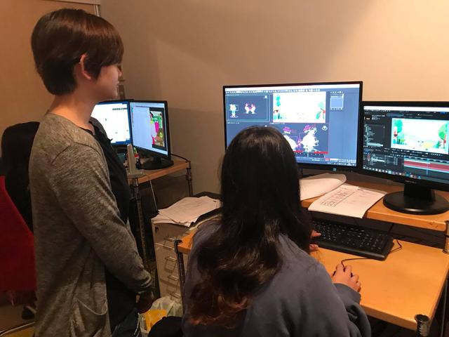静岡からインターンシップで来てる女子さん。結構優秀なんすよ。実際の仕事のカットのアニメーションを担当してもらってる。