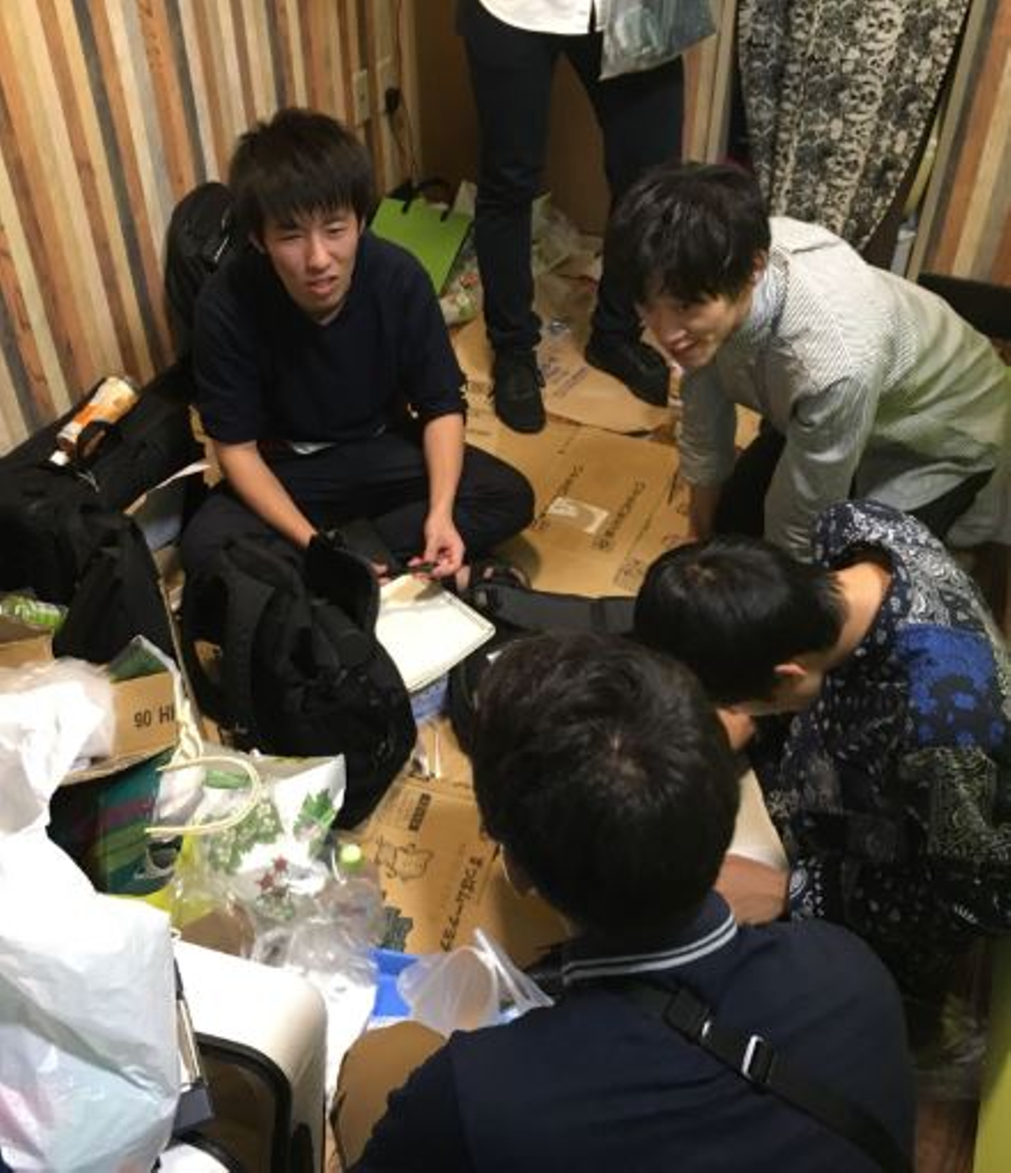 1日の営業を終え、作戦会議をするドローンdeUFOキャッチャーを提供するチーム
