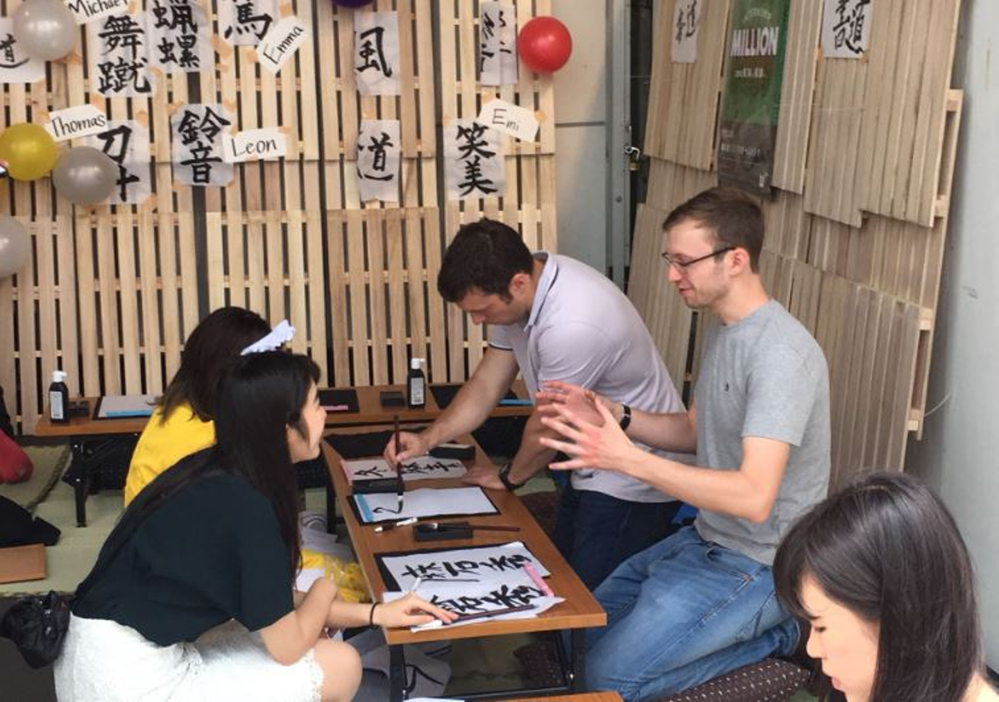 秋葉原で外国人観光客向けに書道サービス(メイドの指導つき)を展開したり・・・