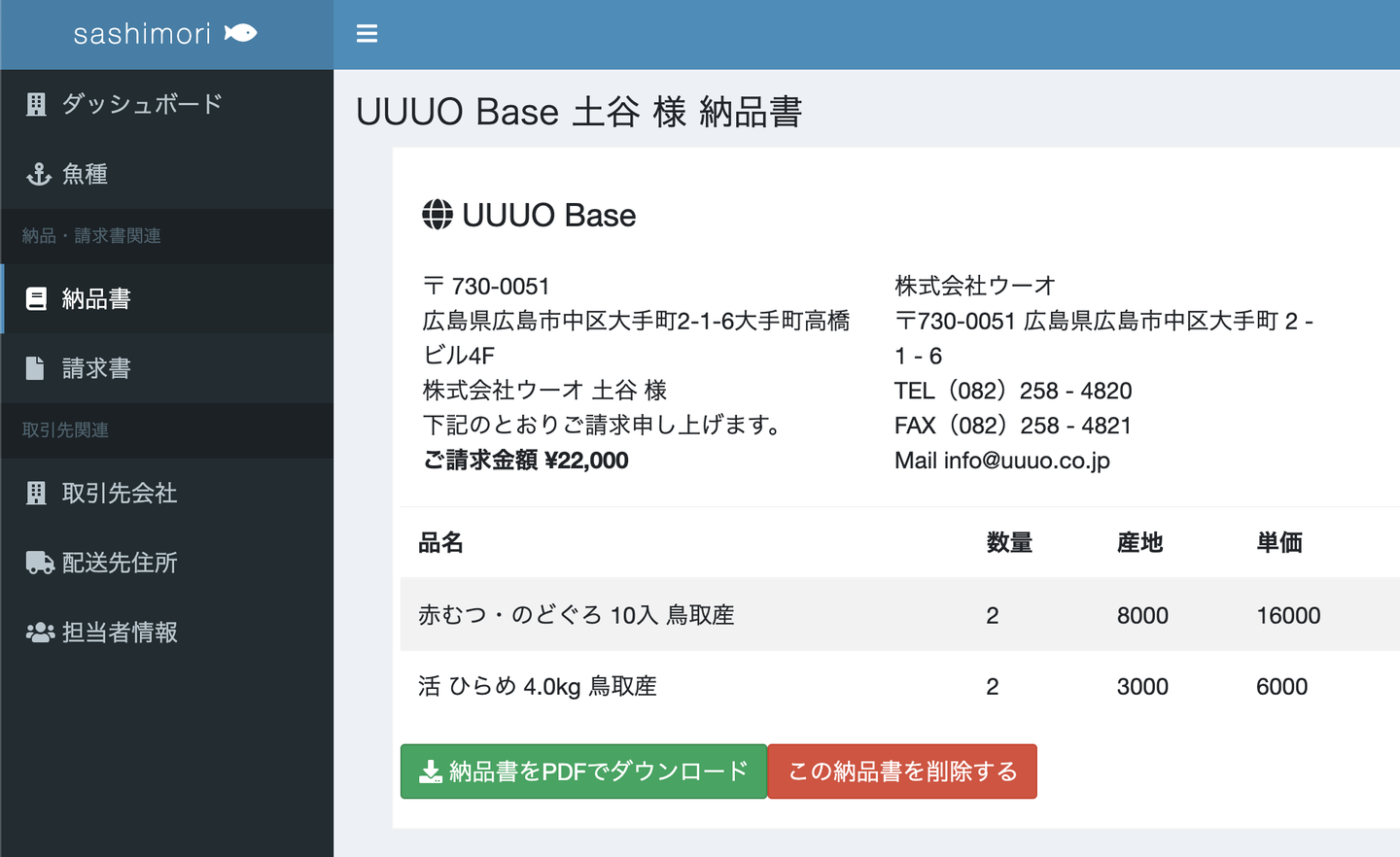 (弊社noteに投稿した記事より転載 納品書・請求書作成作業を早くしたsashimoriという管理画面のお話 https://note.mu/uuuo/n/na143030aa309)